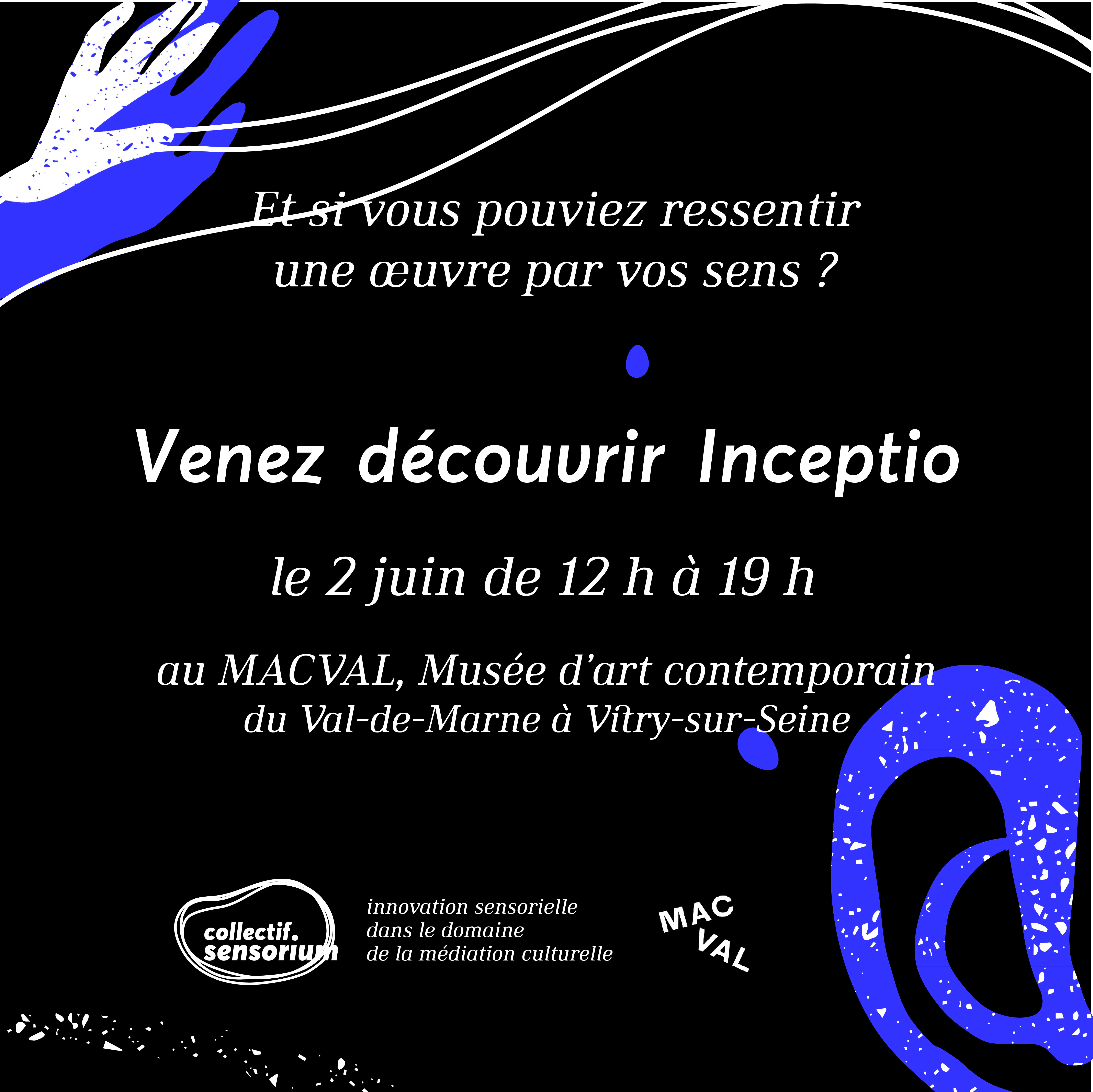 Le collectif sensorium, s’interroge sur cette exploration en réalisant une expérience multisensorielle inclusive. Quelles que soient nos capacités sensori-motrices, le projet inceptio permet à tous la découverte d’une œuvre de manière sensible et personnelle. Au sein d’une nouvelle scénographie muséale, le spectateur est amené à déambuler au cœur d’un espace immersif réagissant à ses émotions et son ressenti.